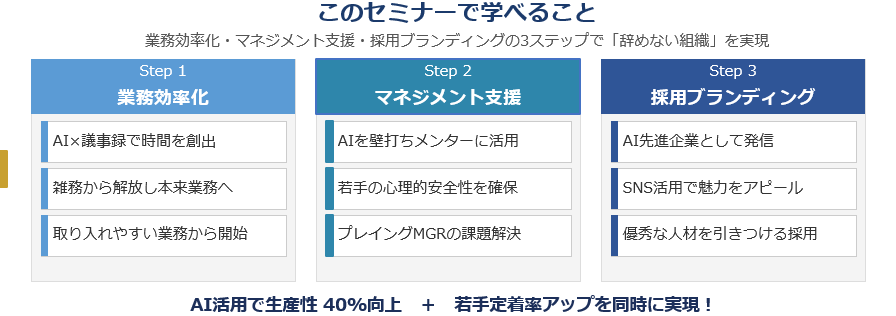 「辞めない組織」を実現するための具体的な3ステップをご紹介します。